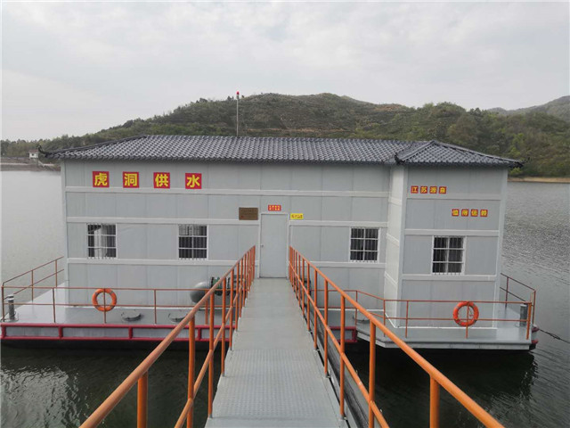 茌平縣東邢水廠項目取水浮船泵站正在安裝中。